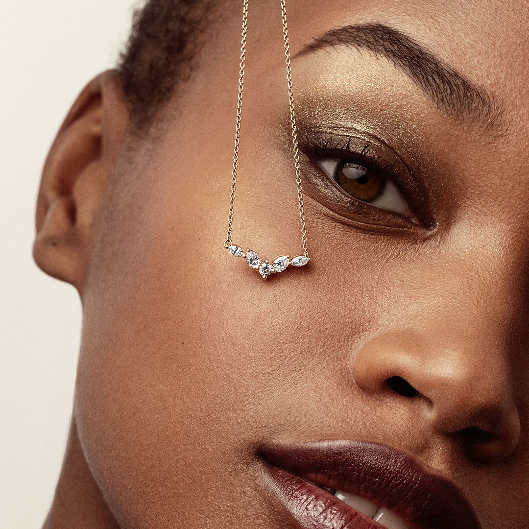 Le collier Charmant en Or 18k personnalisable présente 0,52 Carat de diamants naturels taille brillant, taille poire et taille marquise. Sur une monture au style floral, les artisans joailliers ont imaginé une création qui se déploie élégamment sur le cou.