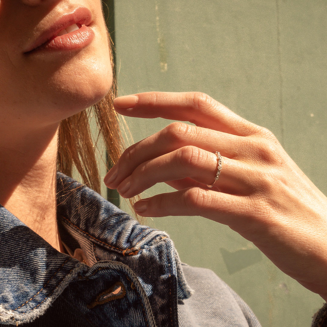 Serti au creux de votre anneau, cette pierre ne sera visible que par vous.