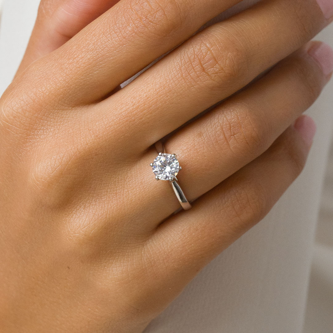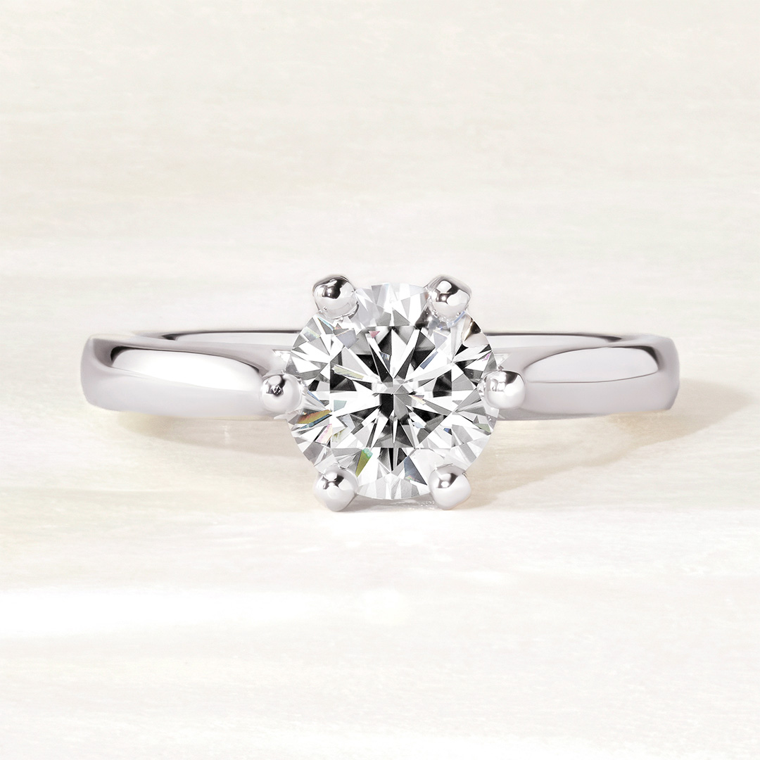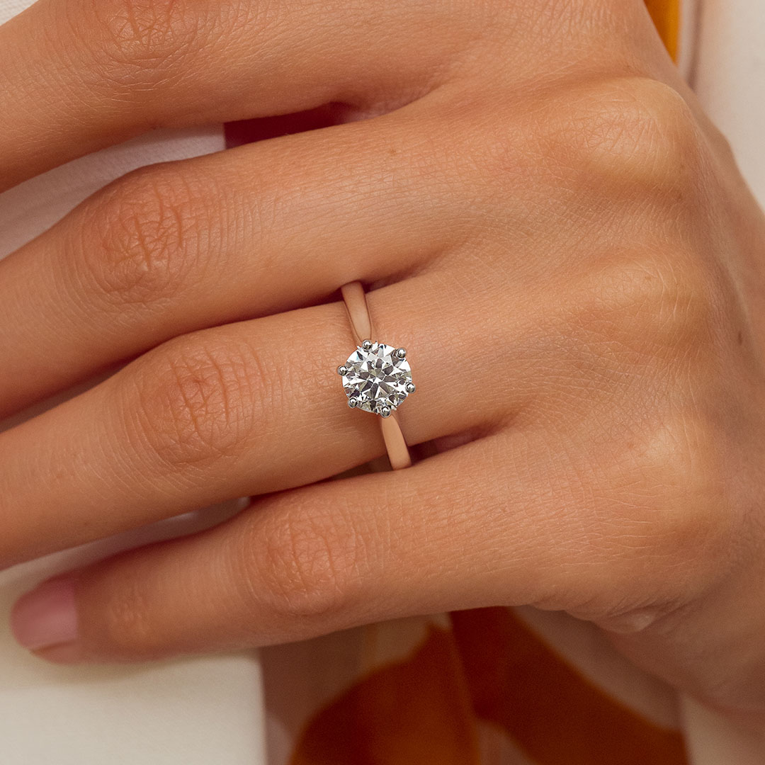 La bague de fiançailles Évidente fait partie des intemporels de la joaillerie auxquels nos artisans joailliers ont souhaité apporter une touche d'originalité. Le diamant central est rehaussé par six griffes arrondies délicatement serties. Le corps de bague se rétrécit vers la pierre de centre, soulignant son aspect aérien.