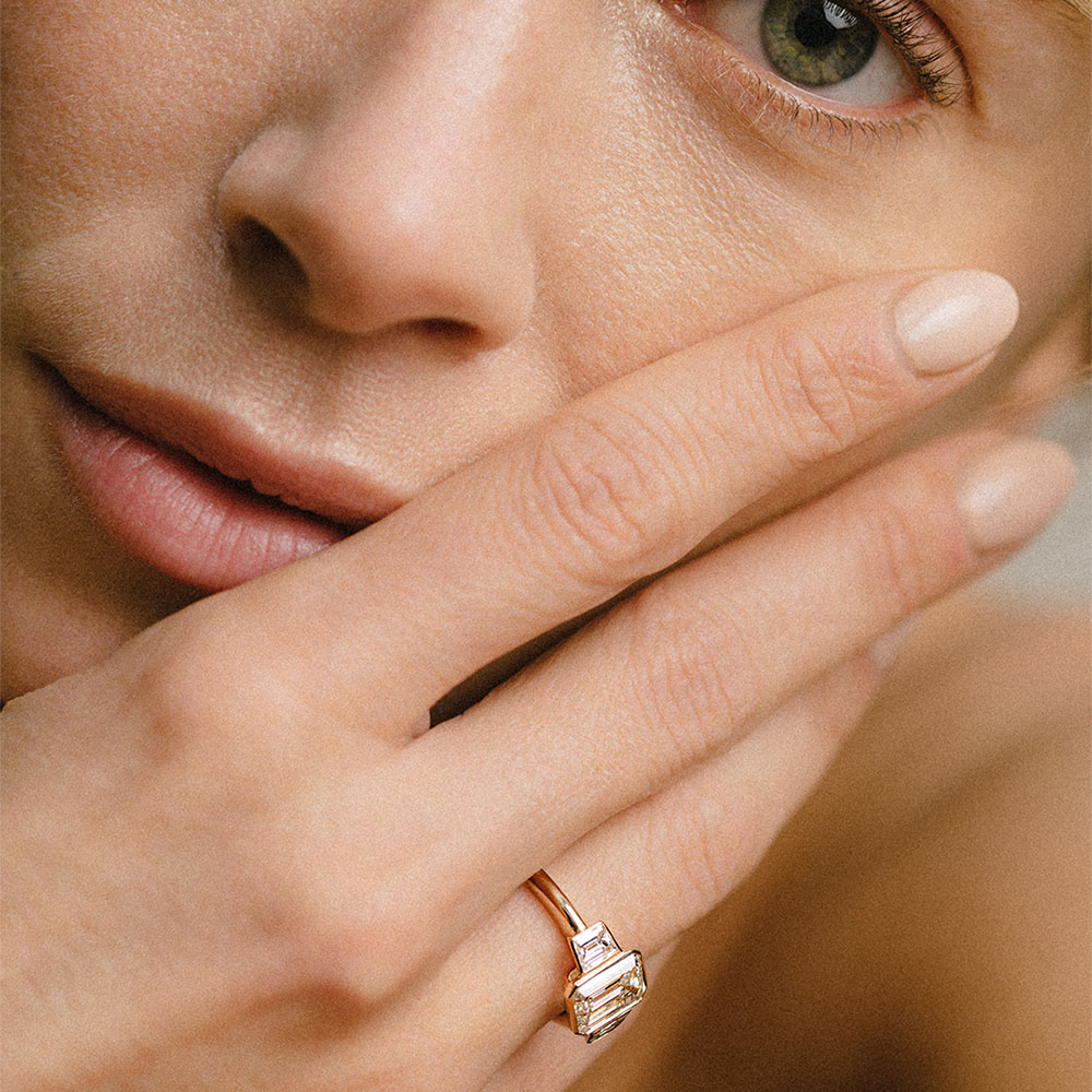 Serti au creux de votre anneau, cette pierre ne sera visible que par vous.
