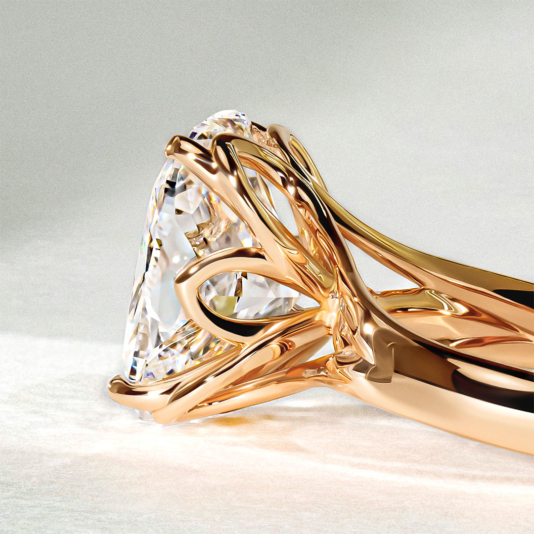 Cette somptueuse création sur-mesure arbore un diamant taille Coussin de 1,00 Carats, magnifiquement serti sur une monture aux lignes courbes rappelant les pétales d'une fleur. Un diamant secret, placé au niveau du panier de la pierre centrale, ajoute de la subtilité à cette bague aussi unique qu'éthique. Réalisée artisanalement à Paris, cette création est le résultat d'une étroite collaboration entre notre client et nos artisans joailliers, témoignant d'un savoir-faire exceptionnel.