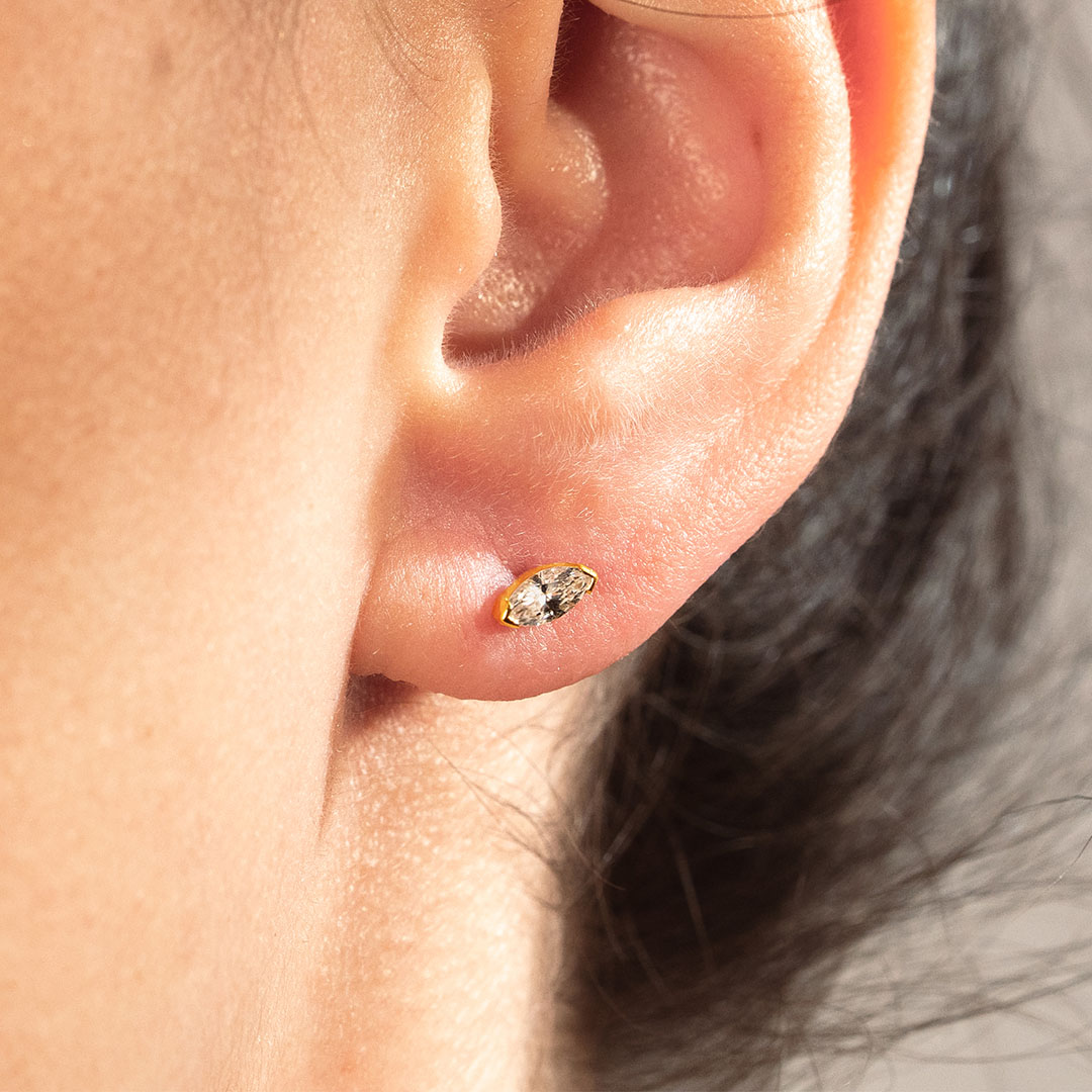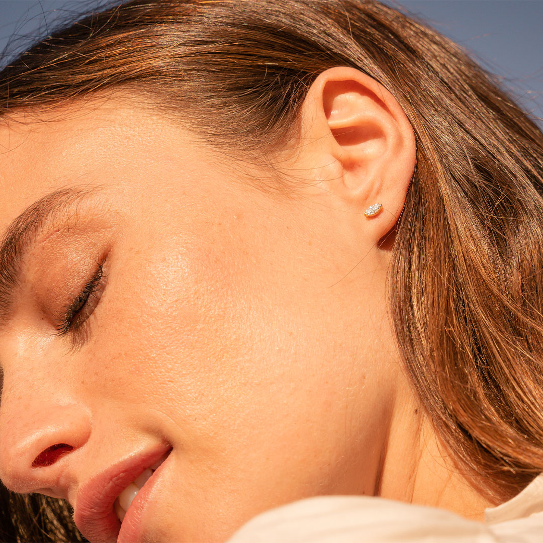 La paire de boucles d'oreilles Pure revient à l'essentiel : un diamant unique délicatement serti. Personnalisable dans sa forme Brillant ou Marquise et dans sa couleur d'Or, elle symbolise parfaitement les moments de vie les plus brillants.