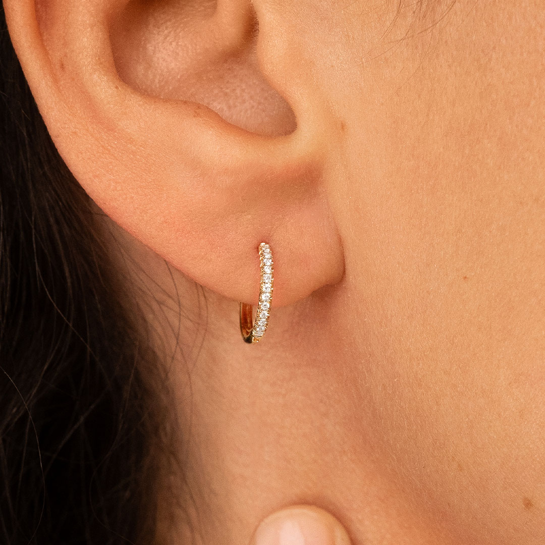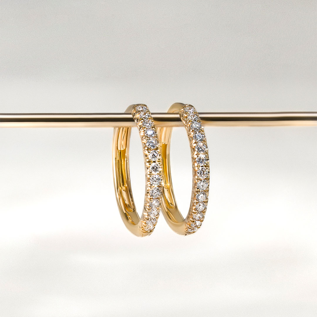 Résolument intemporelles, les boucles d'oreilles Subtiles font référence à notre bague de fiançailles du même nom. Elles reprennent la technique du micro-serti pour un effet aérien.