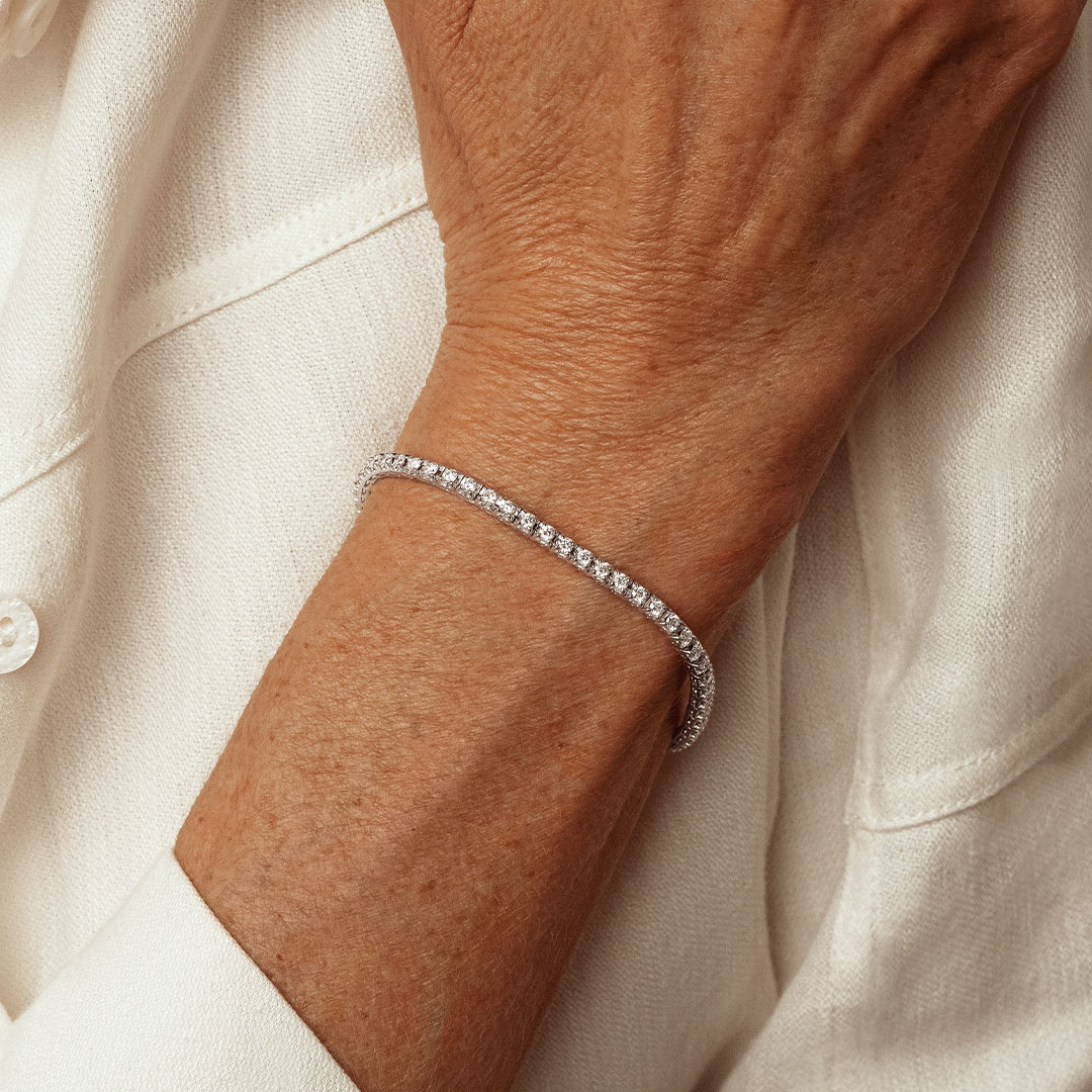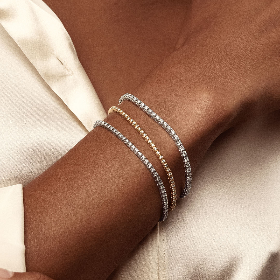 Les bracelets Rivière de diamants font partie des incontournables de la joaillerie. Nos artisans joailliers ont opté pour une monture présente, mettant en valeur chacune des pierres délicatement serties de qualité G/H SI2.