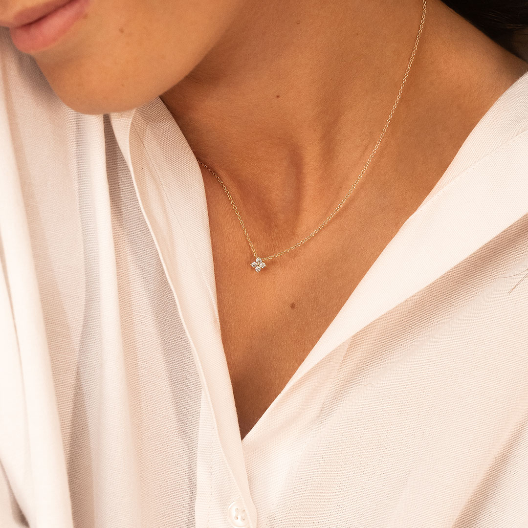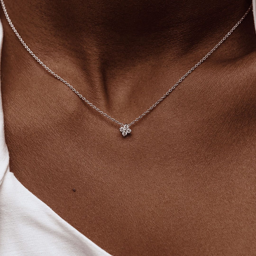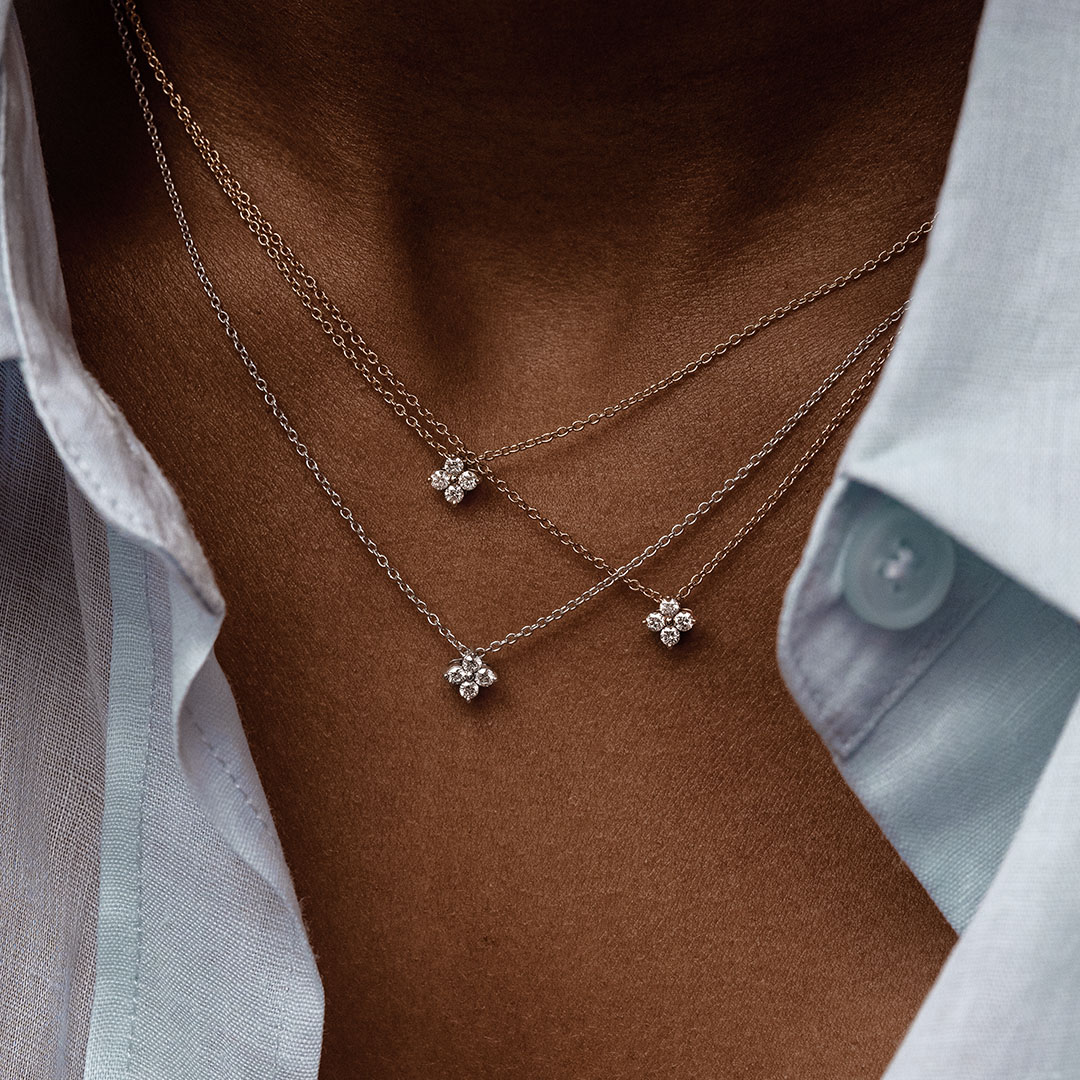 Serti sur une monture en Or blanc, jaune ou rose, nos artisans joailliers confectionnent avec soin, jour après jour, une composition florale créant ainsi un accessoire intemporel à porter au quotidien. Discret et étincelant à la fois, le collier Chanceux demeure le cadeau idéal pour les amoureux de l'artisanat français.