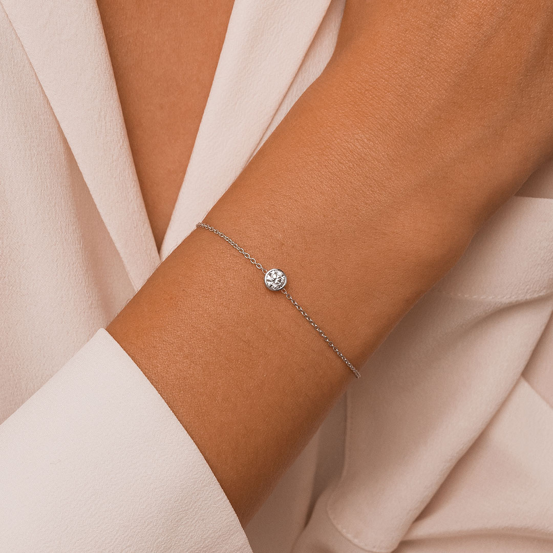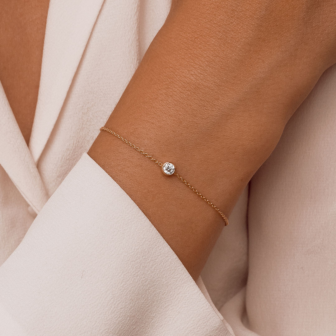 Le bracelet Émouvant s'inscrit dans les grands classiques de la joaillerie revisités par nos artisans joailliers. La technique du serti clos met en valeur la beauté du diamant unique, monté sur une chaîne en Or 18K entièrement personnalisable.