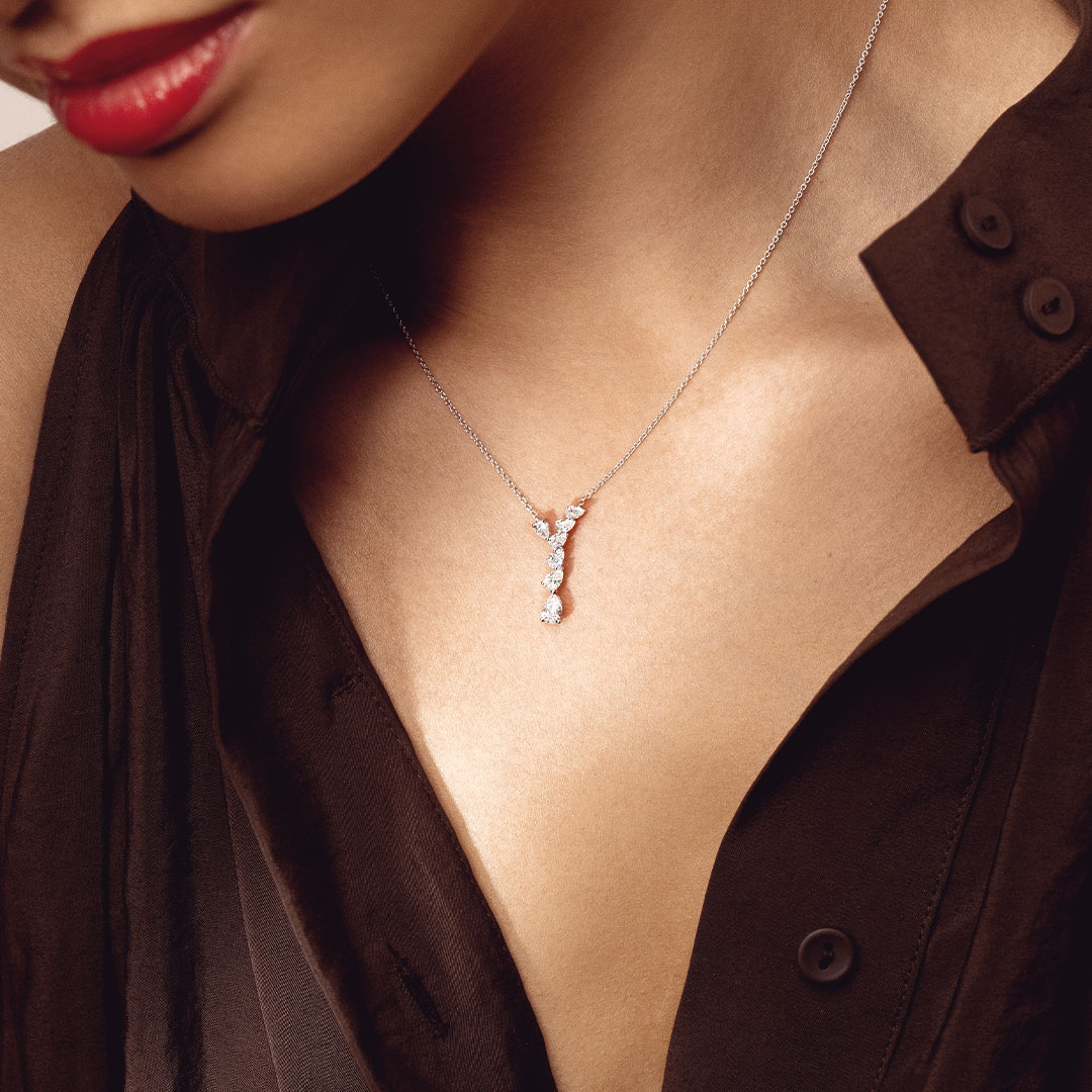 La création Audacieuses Rivière se distingue par son alternance de diamants taille Poire dessinant une élégante courbe plongeante. S'inscrivant dans la tradition de la Haute Joaillerie, ce collier en diamants est monté sur une chaîne en Or 18K entièrement personnalisable.